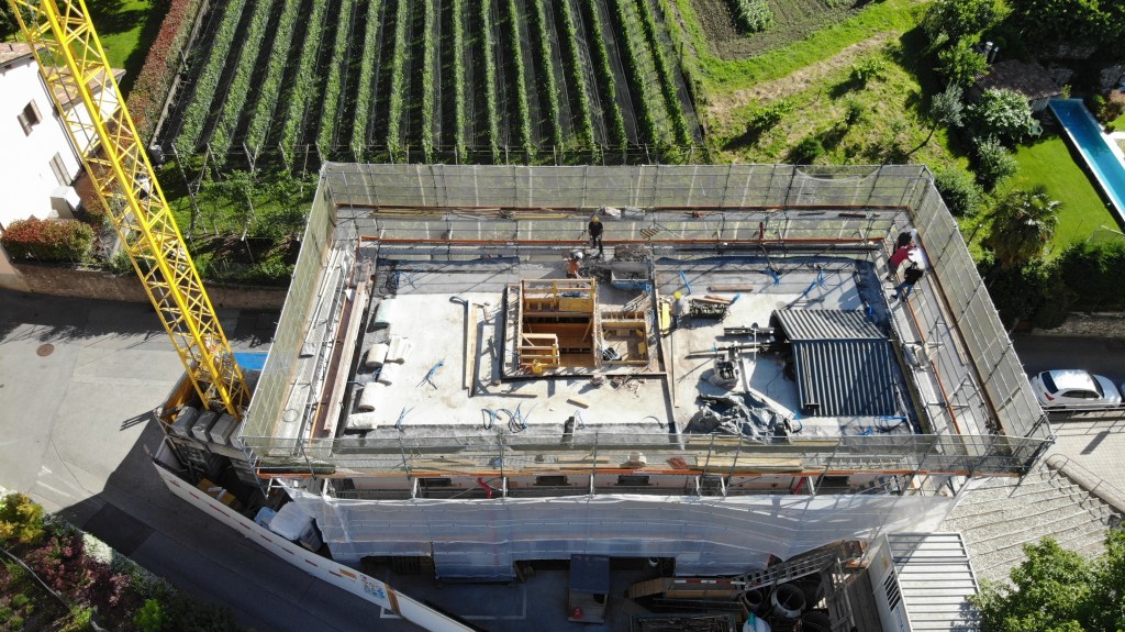 Si sono così conclusi i lavori di ricostruzione della parte interna e il rinforzo della struttura esistente e la realizzazione del nuovo piano interrato in calcestruzzo.