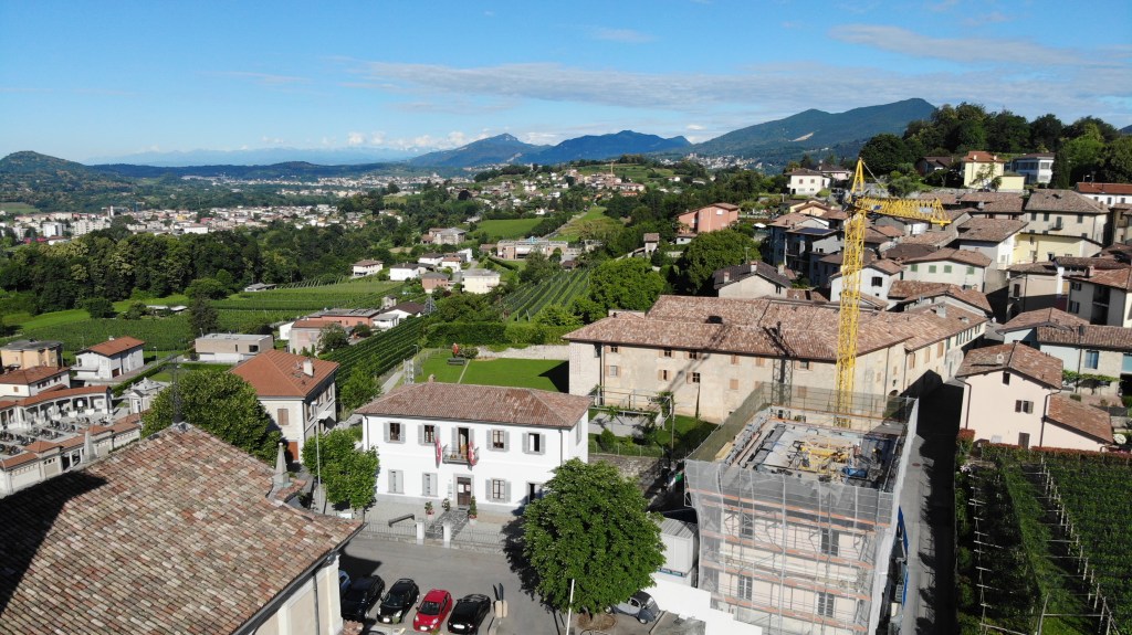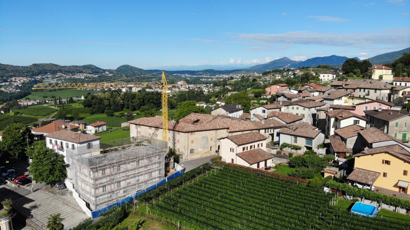 Di seguito un’immagine generale del contesto in cui è inserito il cantiere, con una vista delle Alpi sullo sfondo.